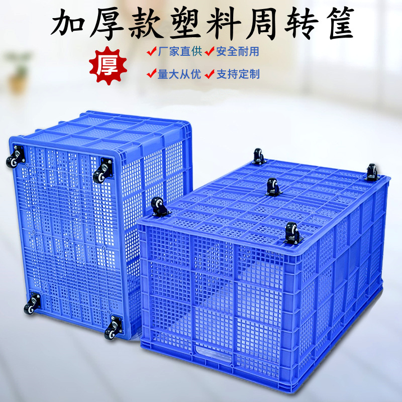 果物野菜プラスチック回転かごの大型長方形は回転箱を厚くして車輪付き物流中継収納枠を持っている