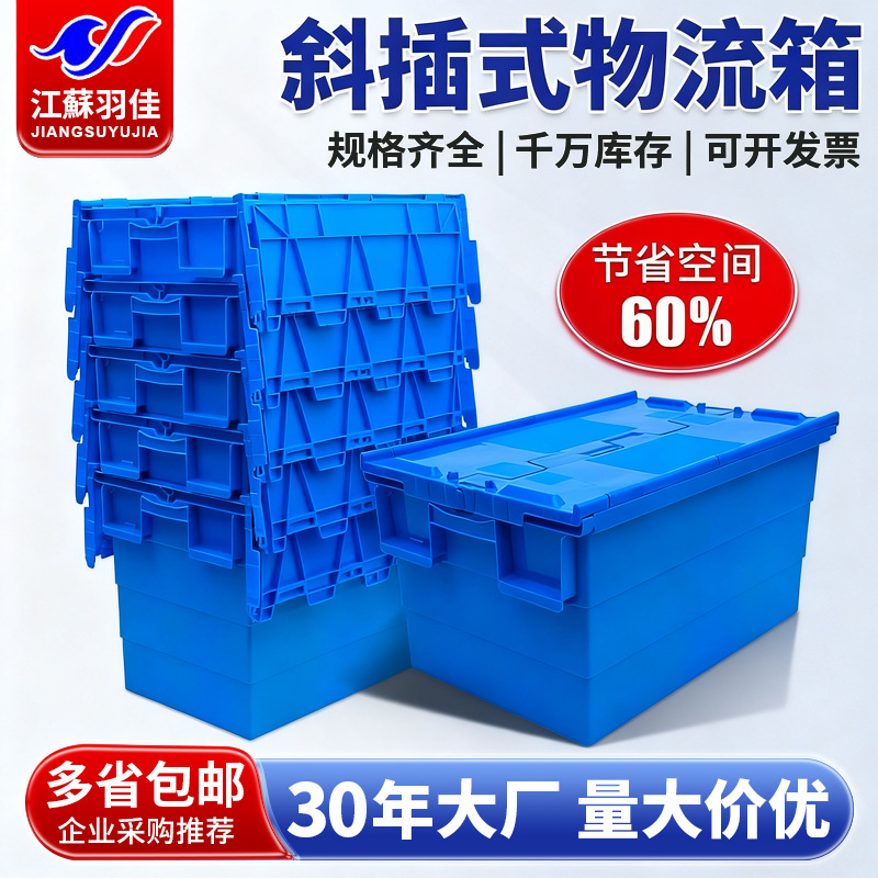 プラスチック回転箱斜め挿し式物流箱蓋付き野菜果物輸送中継収納羅青厚さゴム箱