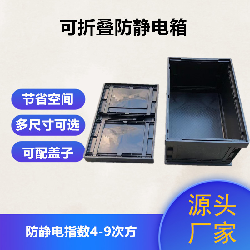 蓋付き帯電防止折りたたみボックス黒折りたたみプラスチックボックス電子プラスチックフレーム倉庫ターンオーバーボックス