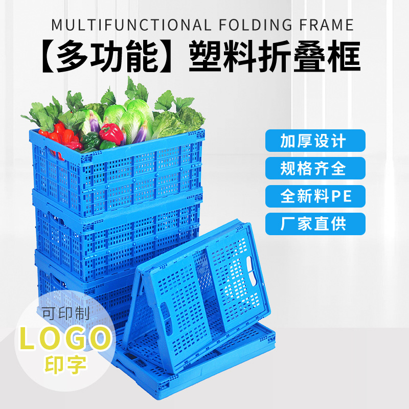 折り畳みプラスチックバスケット生鮮野菜物流輸送バスケット厚いゴムバスケットコールドチェーン倉庫クロスボーダープラスチック回転バスケット