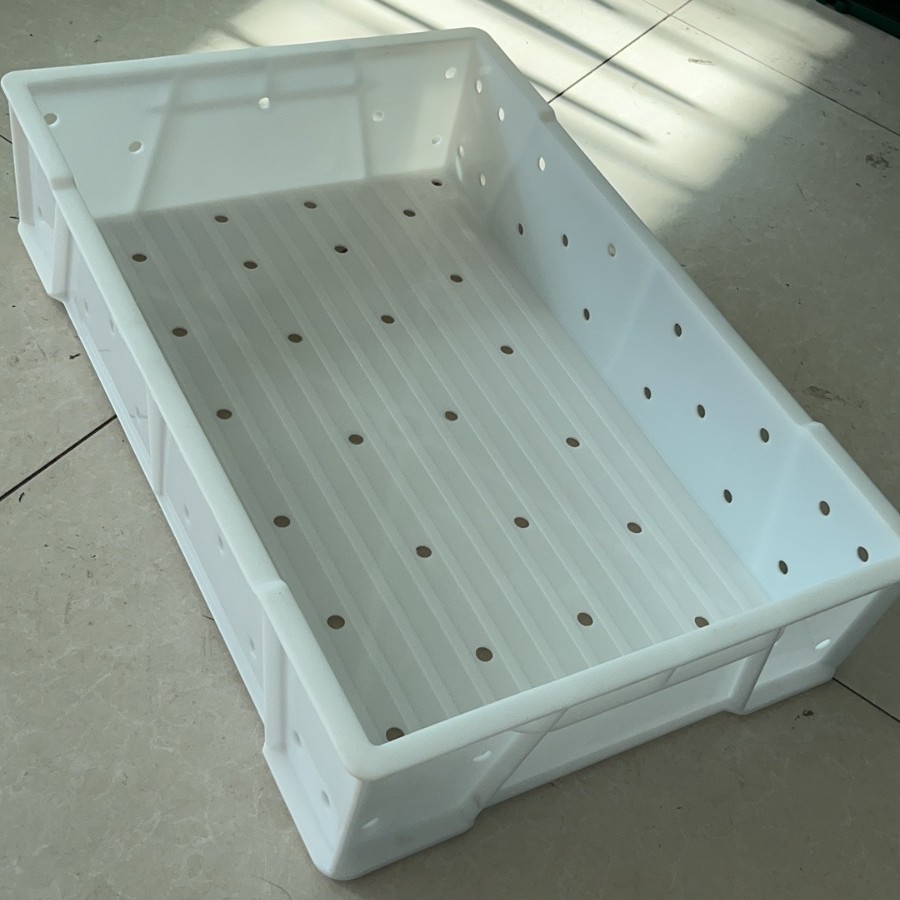 白い厚い選別貨物プラスチック回転箱養殖プラスチック盆長方形空港安全検査食品冷凍盆
