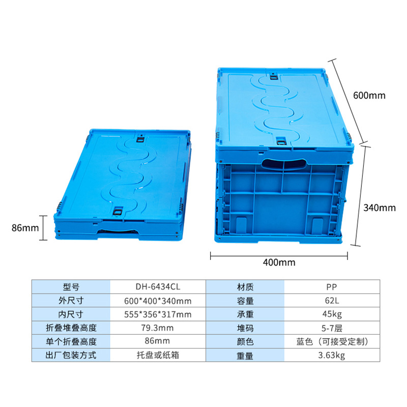長方形プラスチック蓋付き折り畳みかご透かし野菜果物回転枠青大600*400*230mm