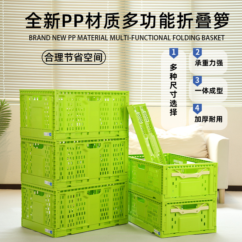 新しいプラスチック折りたたみバスケット、スーパーマーケットの棚、物流生鮮食品PP転送ボックス、野菜保管、果物プラスチックフレーム、メーカー卸売