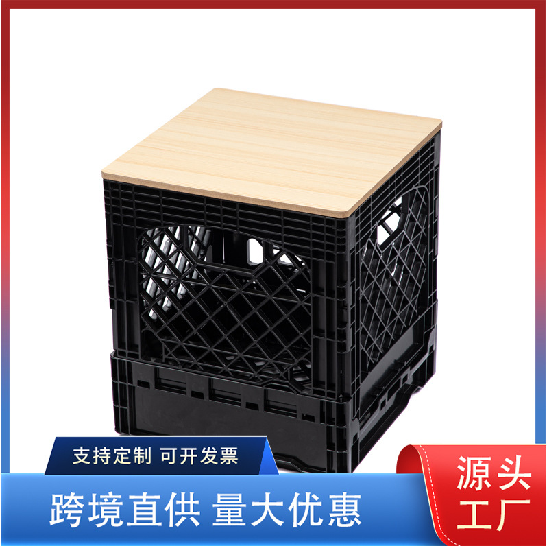 折りたたみ式で厚みのある16クォートの木製蓋付き大型プラスチックボックスターンオーバーボックスブラック輸送ボックスミルクバスケット