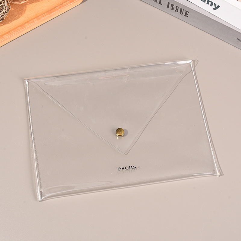 防水a5ファイル封筒ボタンバッグ厚い透明pvc封筒バッグ車縫いpvcハンドバッグ