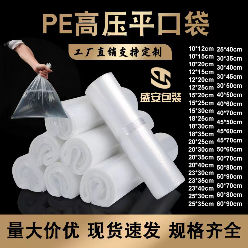 スポット卸売りpe高圧平ポケットプラスチック透明袋包装袋大サイズ服装防塵食品フィルムゴム袋