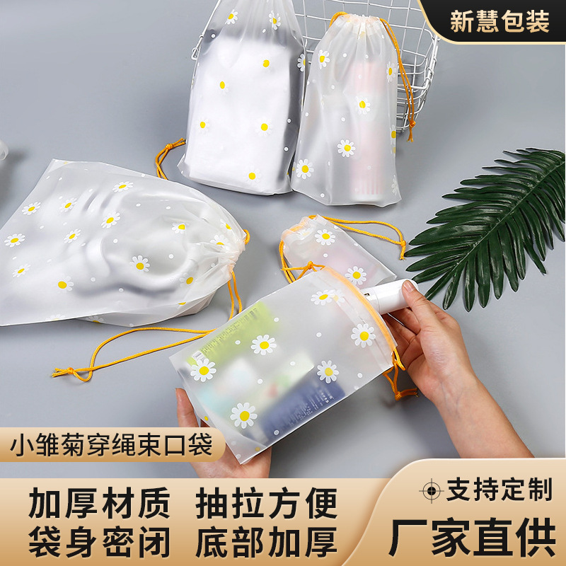 現貨小皺菊磨砂束口袋加厚旅行抽绳袋衣類化粧品収納袋可愛いPE束口袋