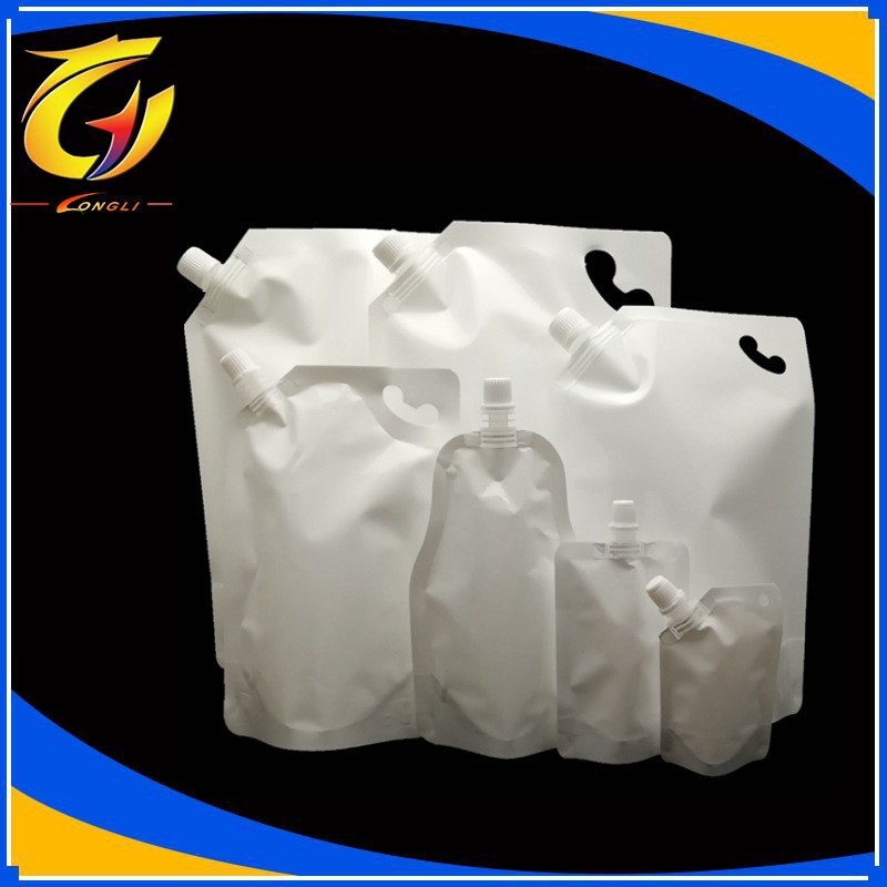 現物通用食品化学工業包装袋乳白自立ノズル液体袋各種規格発注メーカー