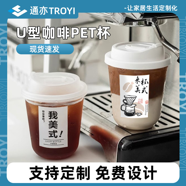 ネット赤ミルクティーカップ使い捨てpetプラスチックジュースボトル高タイプuカップ印刷ロゴ蓋付き包装カップ