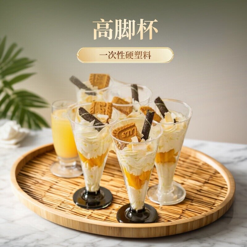 メーカー現物使い捨て透明硬質プラスチック高足カップ甜品台ムースケーキカップミルクカップ