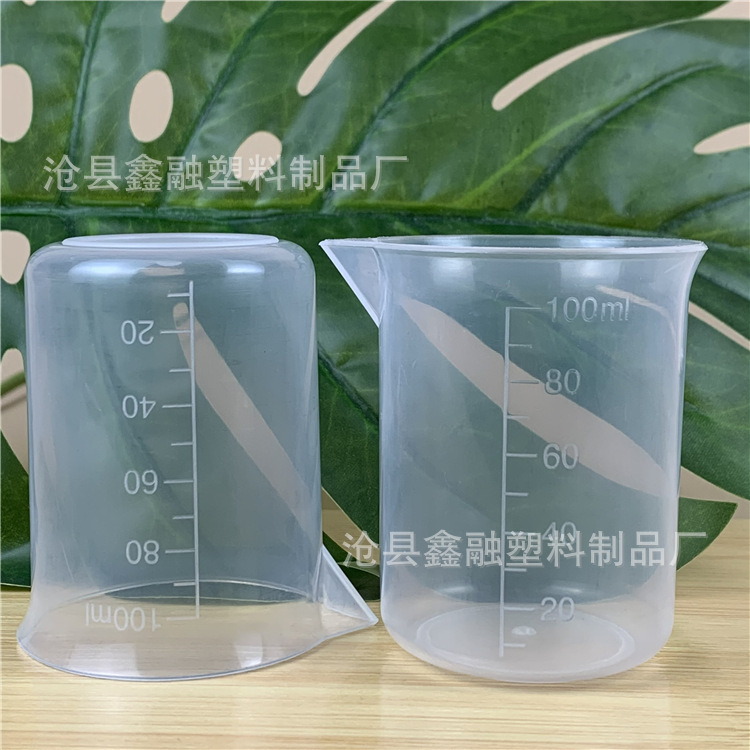 50ml 100ml プラスチックビーカー ハンドルなし 目盛り付き計量カップ 液体用注ぎ口付き分注カップ 実験用ビーカー