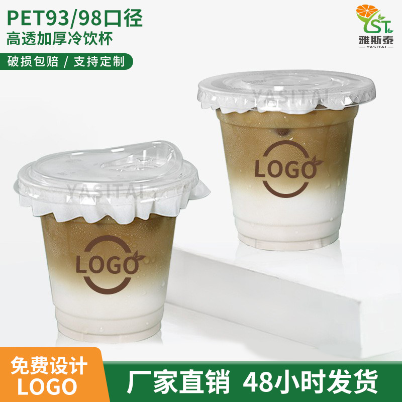 98口径使い捨て透明プラスチックジュースカップヨーグルトカップコーヒーミルクティーin韓風出前pet冷たい飲み物カップ