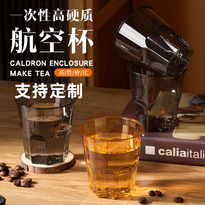 厚いプラスチックカップ使い捨てカップ航空カップ硬い食品級コップ家庭用ビジネス透明水晶宇宙カップ