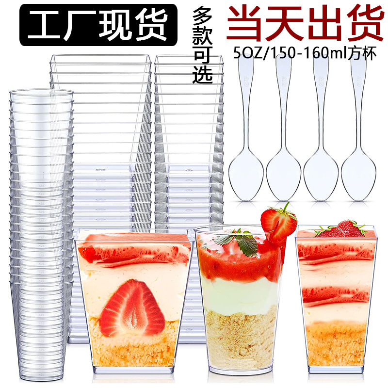 メーカー卸売り使い捨てpsプラスチック角形ゼリーカップ布丁カップムースカップ水晶泥カップヨーグルトケース