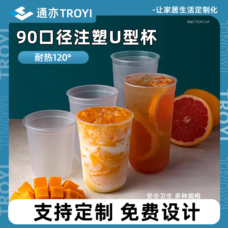 U型射出成形ミルクティーカップ卸売り使い捨てミルクティーカップ太ったカップ厚い商用射出成形カップミルクティーカップ蓋付き