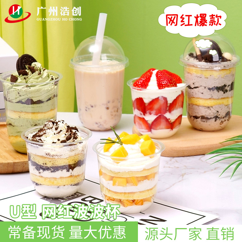 使い捨てフルーツヨーグルト焼き梨高温耐性プラスチックデザートカップ焼き草ミルクティーカップカスタム包装箱