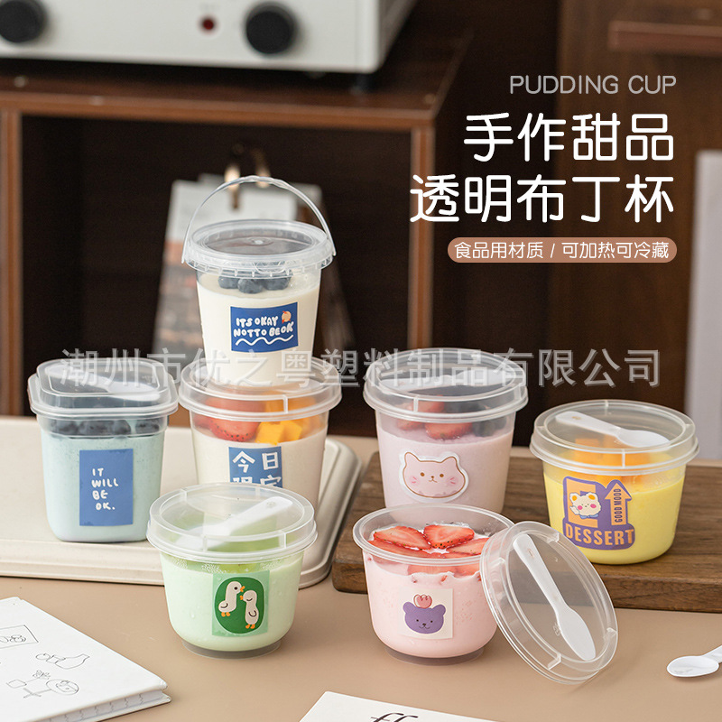 焼き梨カップヨーグルト耐高温プラスチック使い捨て包装箱ネット赤ムースプリン焼き仙草ミルクティー専用