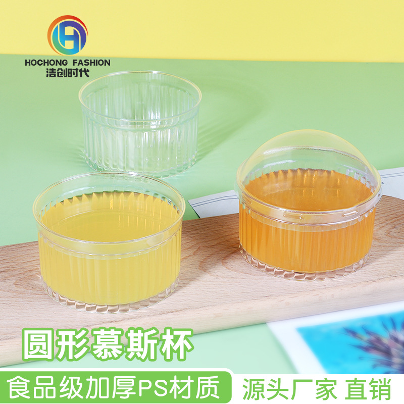 クリエイティブストライプ円形ムースカッププリンゼリーカップアイスクリームデザートケーキカップpsプラスチック使い捨てカップ