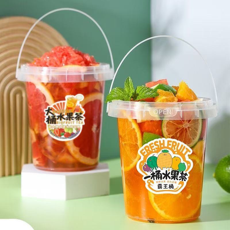 大桶果物茶桶カップ1000ml手提げミルク茶桶1桶果物茶杯ネット赤商用1リットル覇王桶