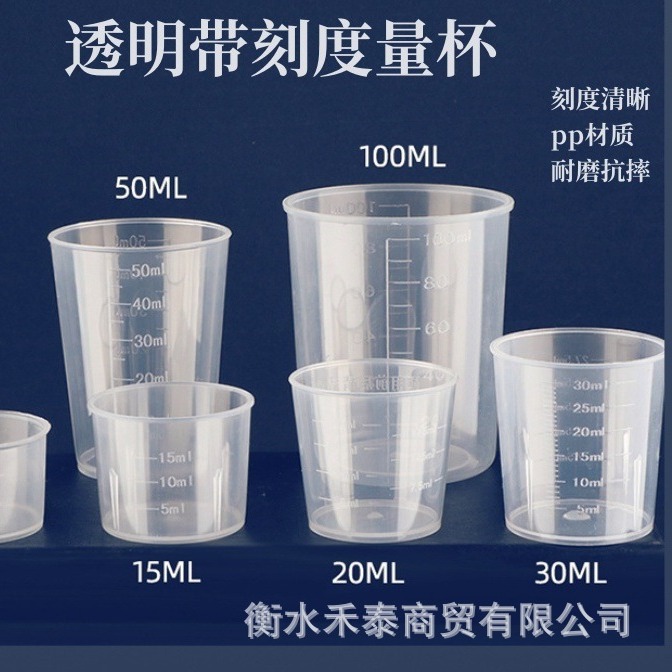 スポット卸売り10ml 20ml 30ml 50ml 100mlプラスチック計量カップスケール付き計量カップ実験計量カップ