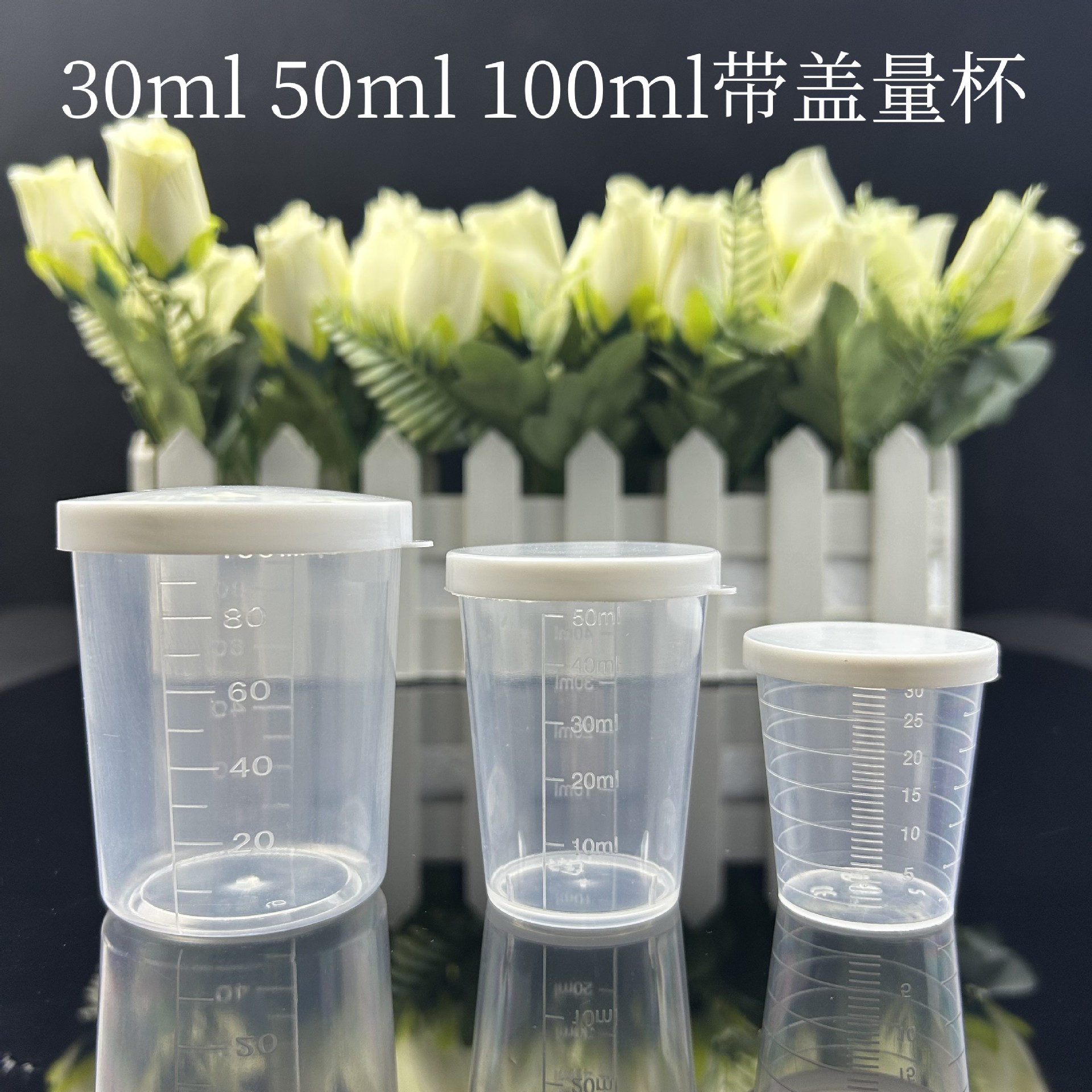 現品30ml 50ml 100ml多規格蓋付きプラスチック計量カップ透明スケールプラスチック計量カップ分注カップ