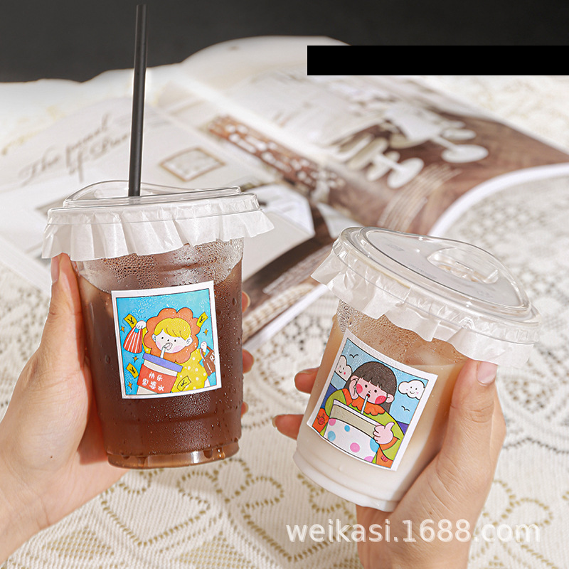 ネット赤プラスチックミルクティー飲料冷たい飲み物包装カップ厚い透明ジュース使い捨て蓋付きコーヒーカップ卸売り