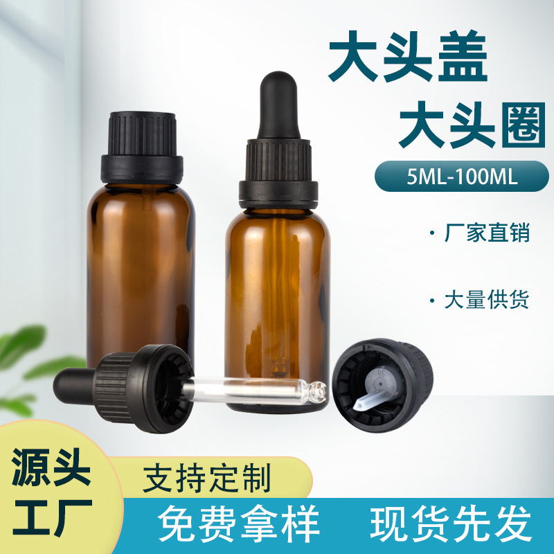 大きなヘッドカバー茶色エッセンシャルオイルボトル分注ボトル茶色エッセンシャルオイルボトル黒色防犯カバーガラスエッセンシャルオイルキャップスポイトリング