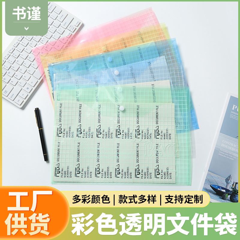 厚い書類袋透明プラスチックボタン式学生収納袋a4資料袋カラーボタン書類袋