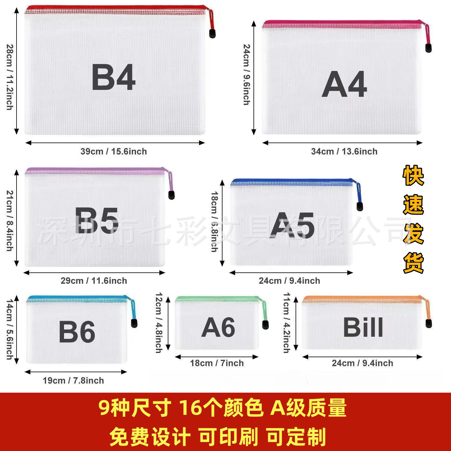 メッシュファイル袋学生試験資料答案収納防水ファスナー袋印刷ロゴネット糸科目袋