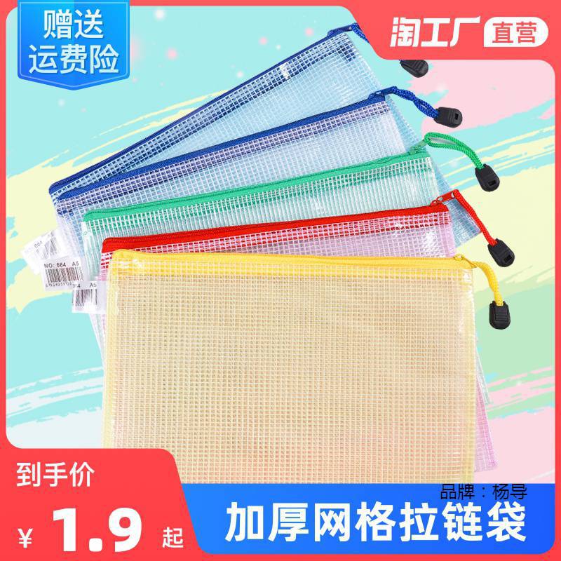 厚い書類袋透明メッシュジッパー袋大容量a4試巻収納袋チケットクリップ学生用文房具防水