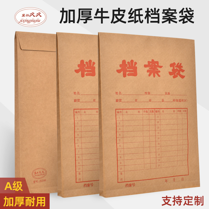 A4 増粘クラフト紙ファイルバッグ木材パルプ無酸紙ファイルストレージ情報バッグオフィス情報バッグロゴ印刷可能