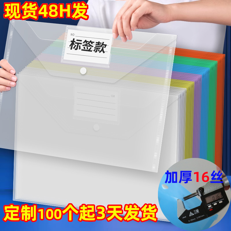 メーカー卸売りプラスチックppボタン書類袋a4学生試巻資料袋透明事務書類袋書類袋