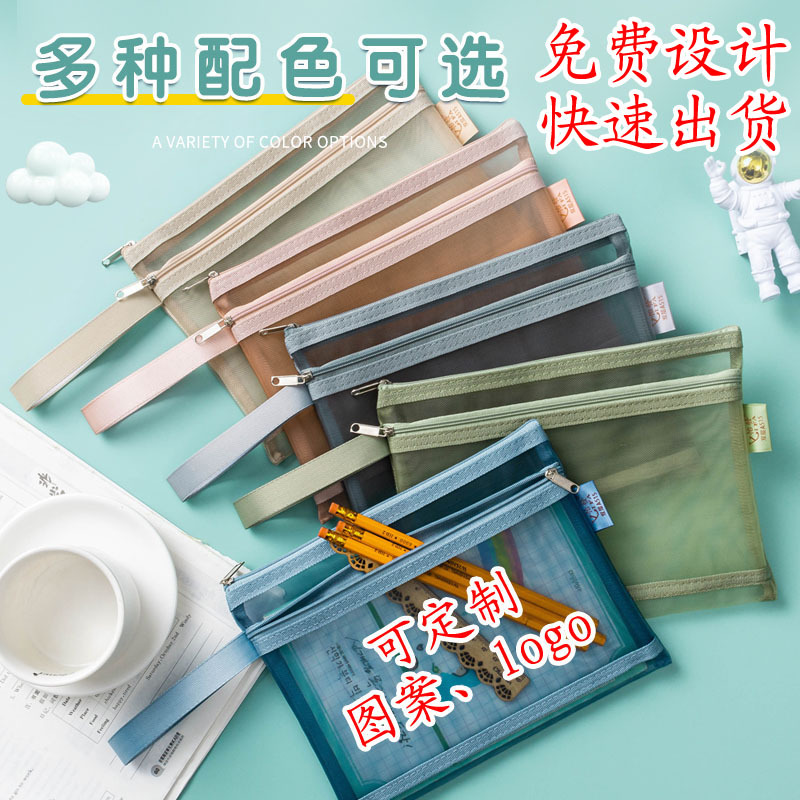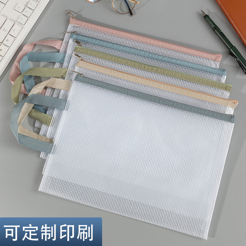 透明ファイルバッグpvcグリッドジップロックバッグa4 a4资料バッグメッシュバッグカスタム印刷ロゴ工场直供