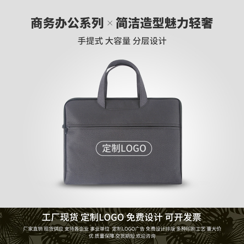 手提げ書類袋チャック式二重手提げ大容量収納袋ビジネス手提げ袋はロゴを印刷できます。