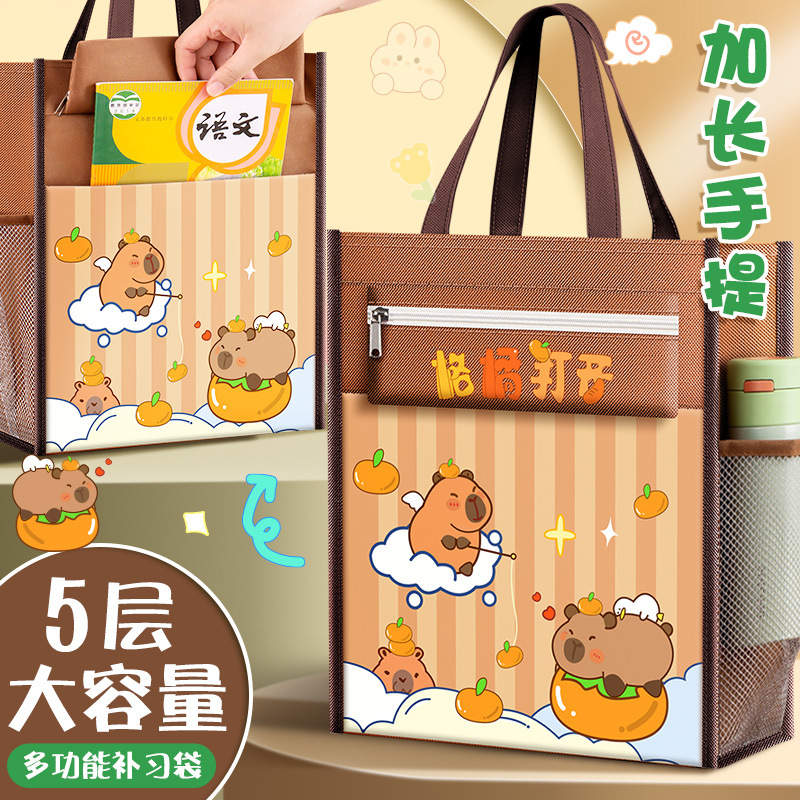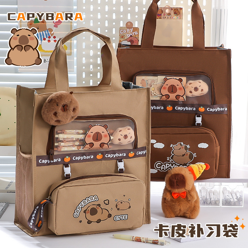 カピバラ補習手提げ袋学生は本の袋を持っています。