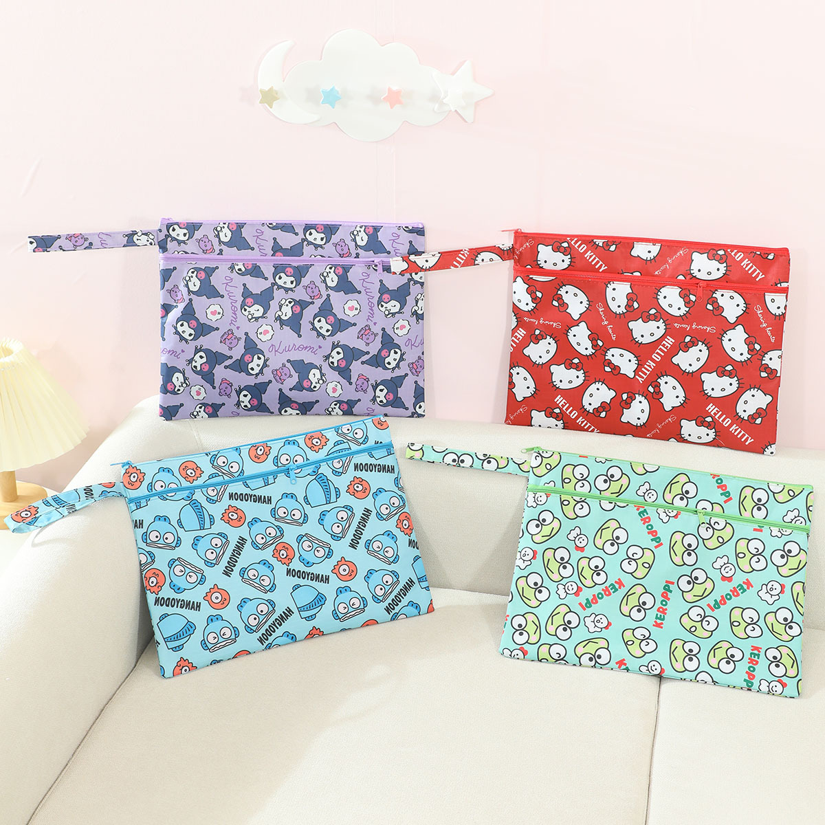 小学生メッシュ書類袋アニメ単層ファスナー文房具収納袋かわいいA4ナイロンメッシュ試験袋
