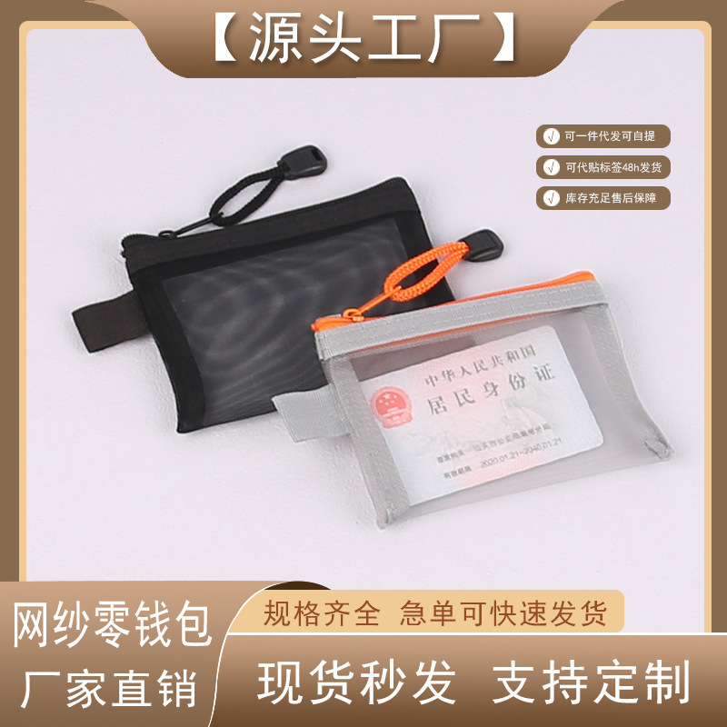 ミニ透明メッシュジッパーバッグ8:00小物ツールコイン小銭カード身分証明書銀行カード収納袋