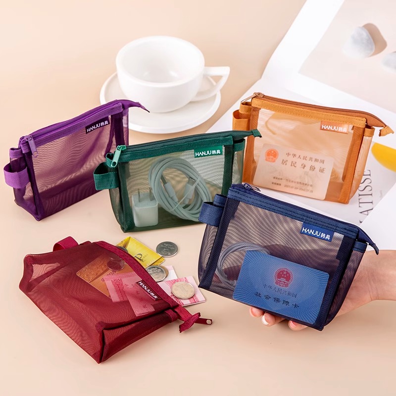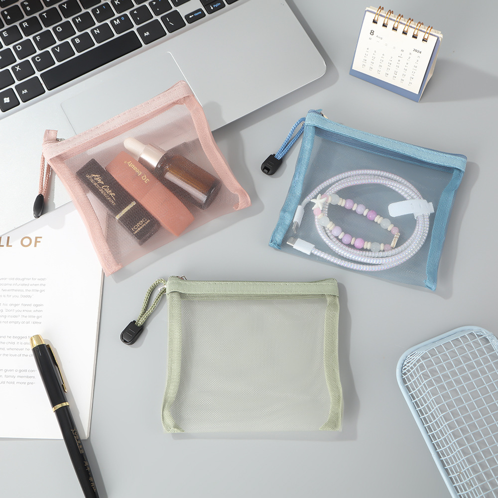 国境を越えてモランディ網糸透明書類袋携帯学生文房具袋化粧品収納袋小銭袋