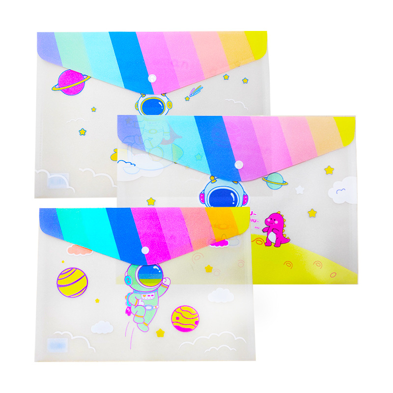 現物卸売りカラープラスチックボタン袋学校資料ファイル収納バッグかわいいハンドバッグ漫画ファイルバッグ