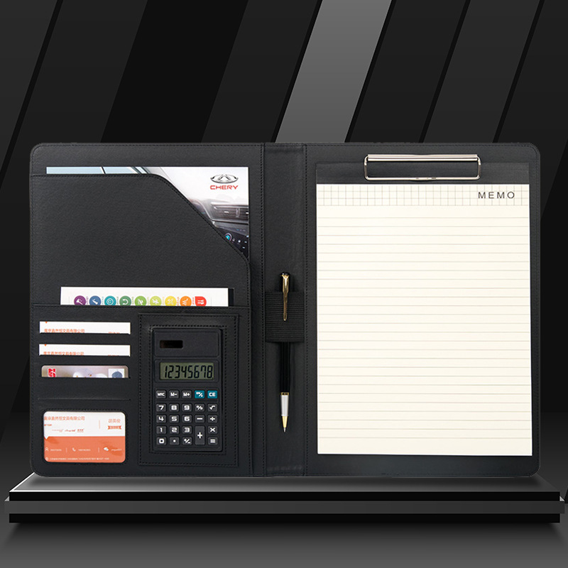 A4ファイルオーダーメード皮质ビジネスマネージャークリップ电卓ジッパークリップオフィス用品多机能ファイルカスタマイズ