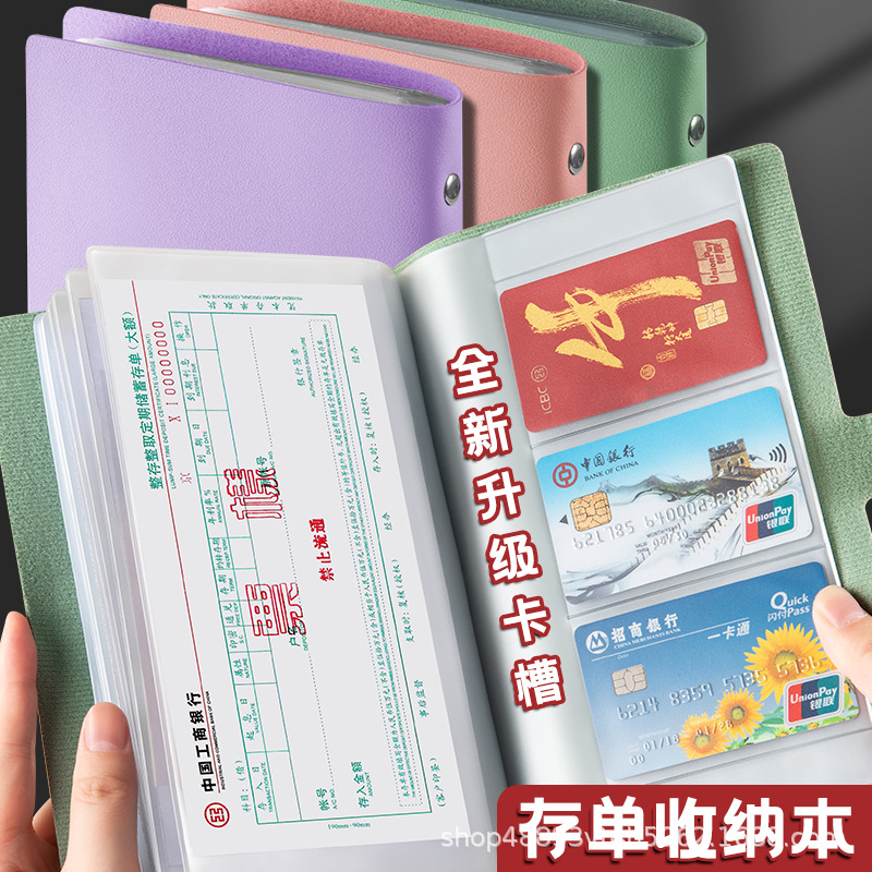 通帳収納ブック 銀行定期預金証明書コレクションブック 紙幣小切手入れ札収納ブック 決済書類整理ブック ジッパー付き
