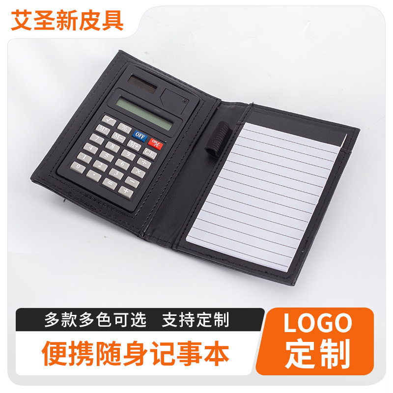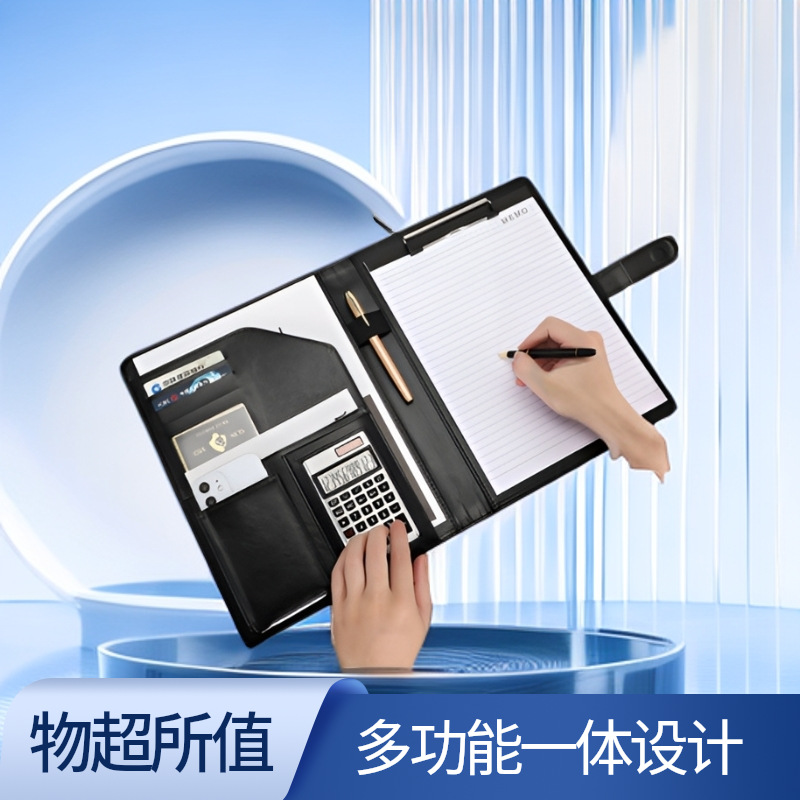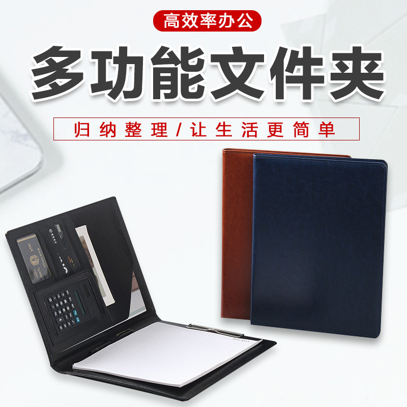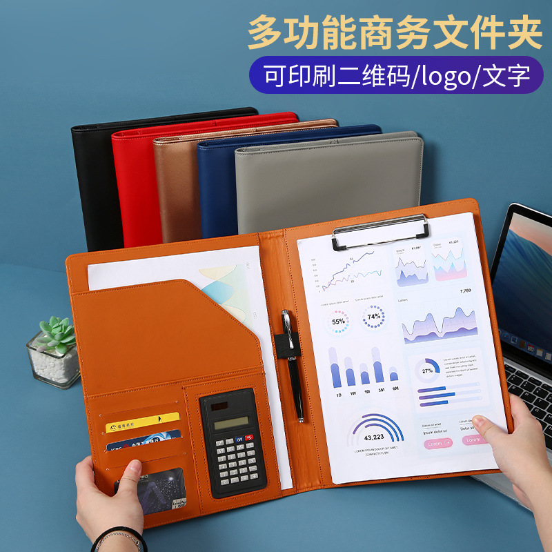 ビジネスオフィスa 4皮革マネージャークリップ多機能ファイルルーズリーフ書類クリップ電卓付き押印ロゴ