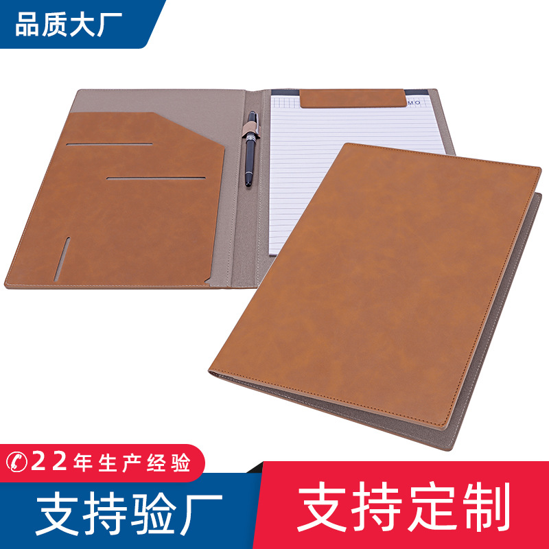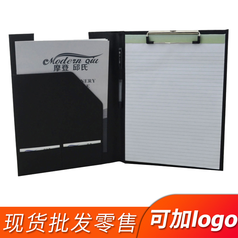 スポット卸売りビジネスオフィスビジネスバッグメモ付きボードクリップa 4革マネージャークリップファイルにロゴを付けることができます