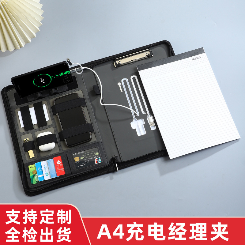 A4多機能ワイヤレス充電マネージャークリップカスタマイズビジネス充電宝ジッパーブリーフケースモバイル電源フォルダ