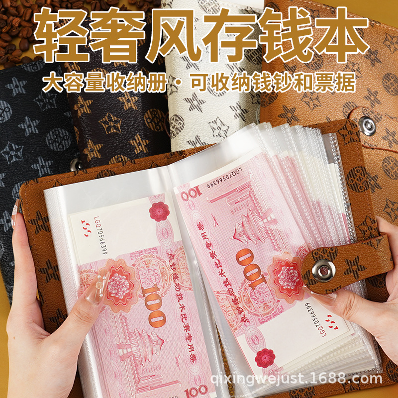 越境暗号現金貯金帳、現金収納バッグ、2025年新型収納帳、貯金財布、お金帳、家計簿