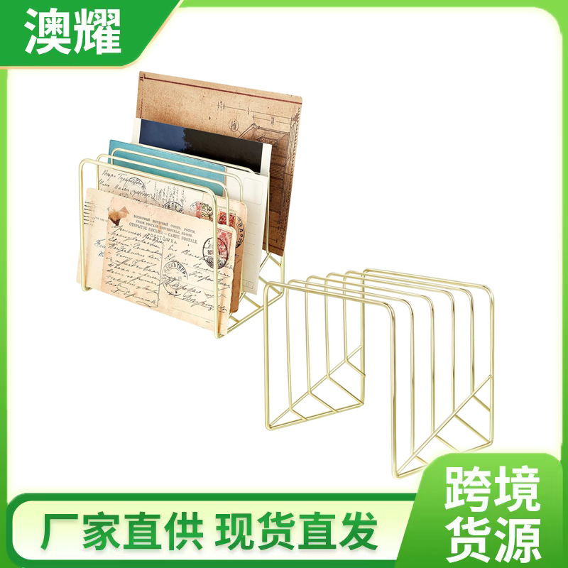 モダンでシンプルな北欧スタイルのデスクトップゴールデンアイアン本棚マガジンラックファイルラックブックスタンド