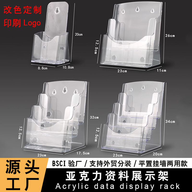 アクリル A6 多層データラック A5 透明吊り下げ可能なプラスチック新聞ラック A4 3 層マガジンラックカスタムロゴ
