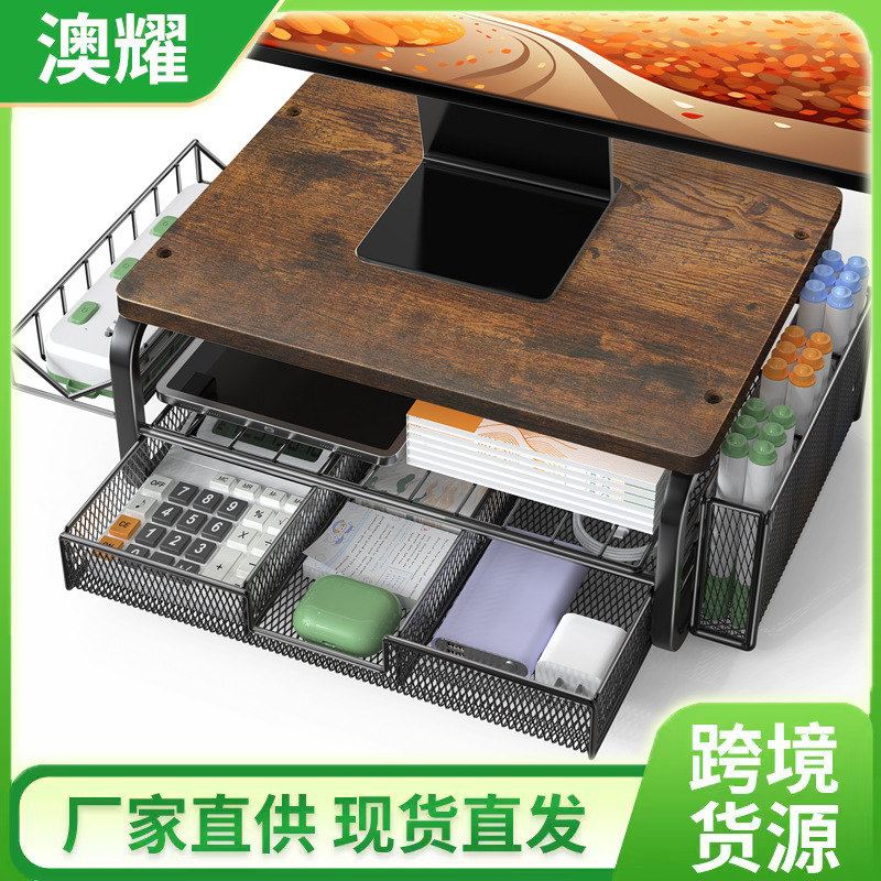 クロスボーダーデスクトップ収納ラックパンチフリーメタルコンピュータモニター高架オフィス多層ファイル収納ラック