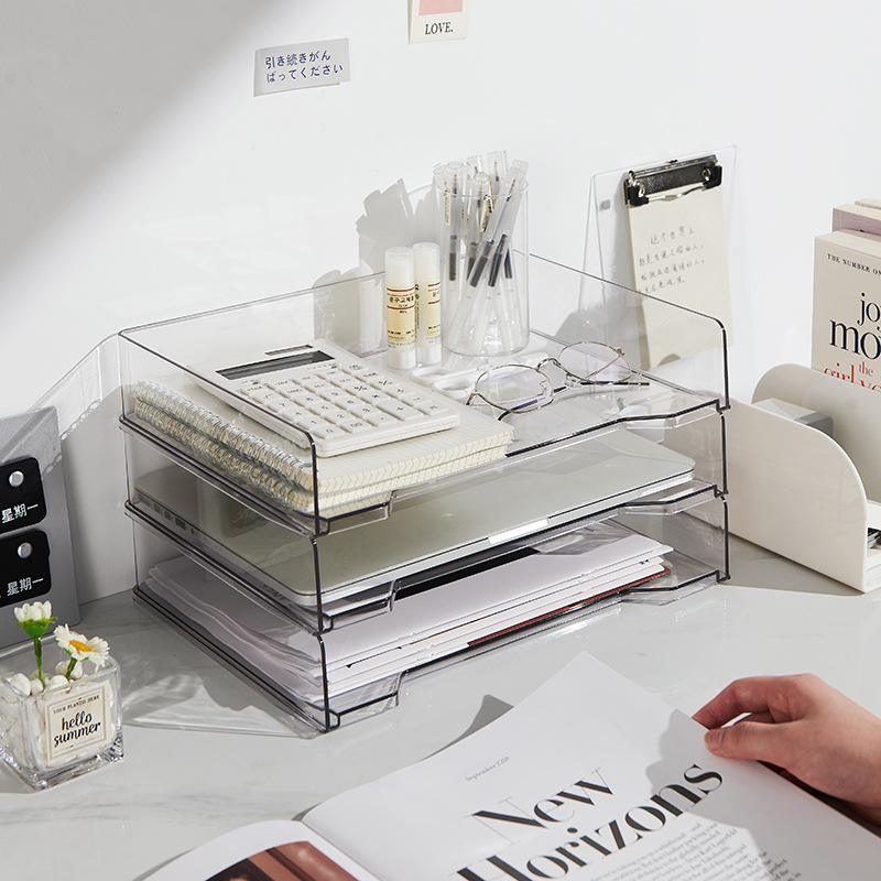 国境を越えた特別なアクリル ファイル トレイ透明積み重ね可能な A4 紙トレイレター情報整理収納ラック
