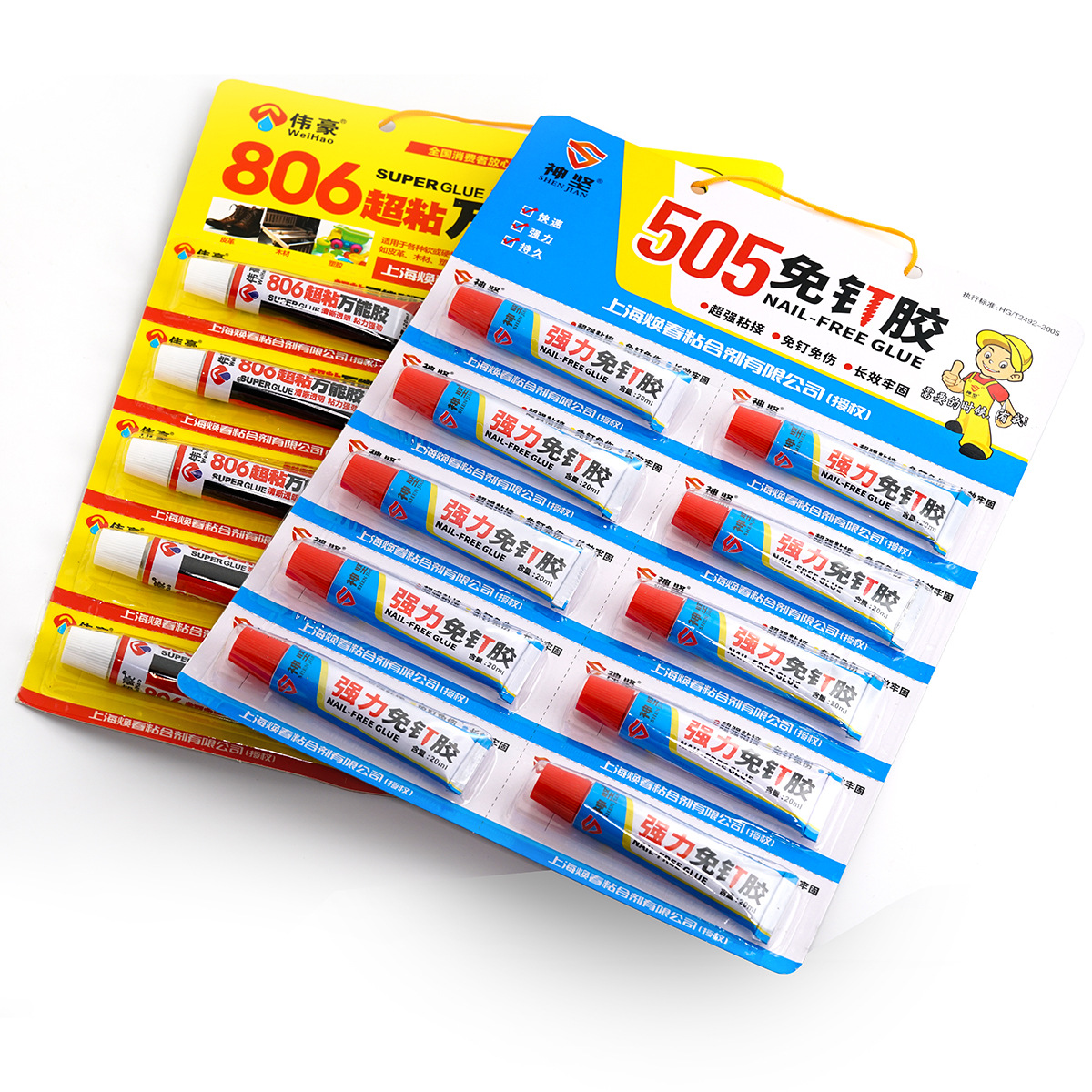 505強力無釘糊/806超粘万能糊ペースト体ジェル水掛けカード10本板付き強力糊